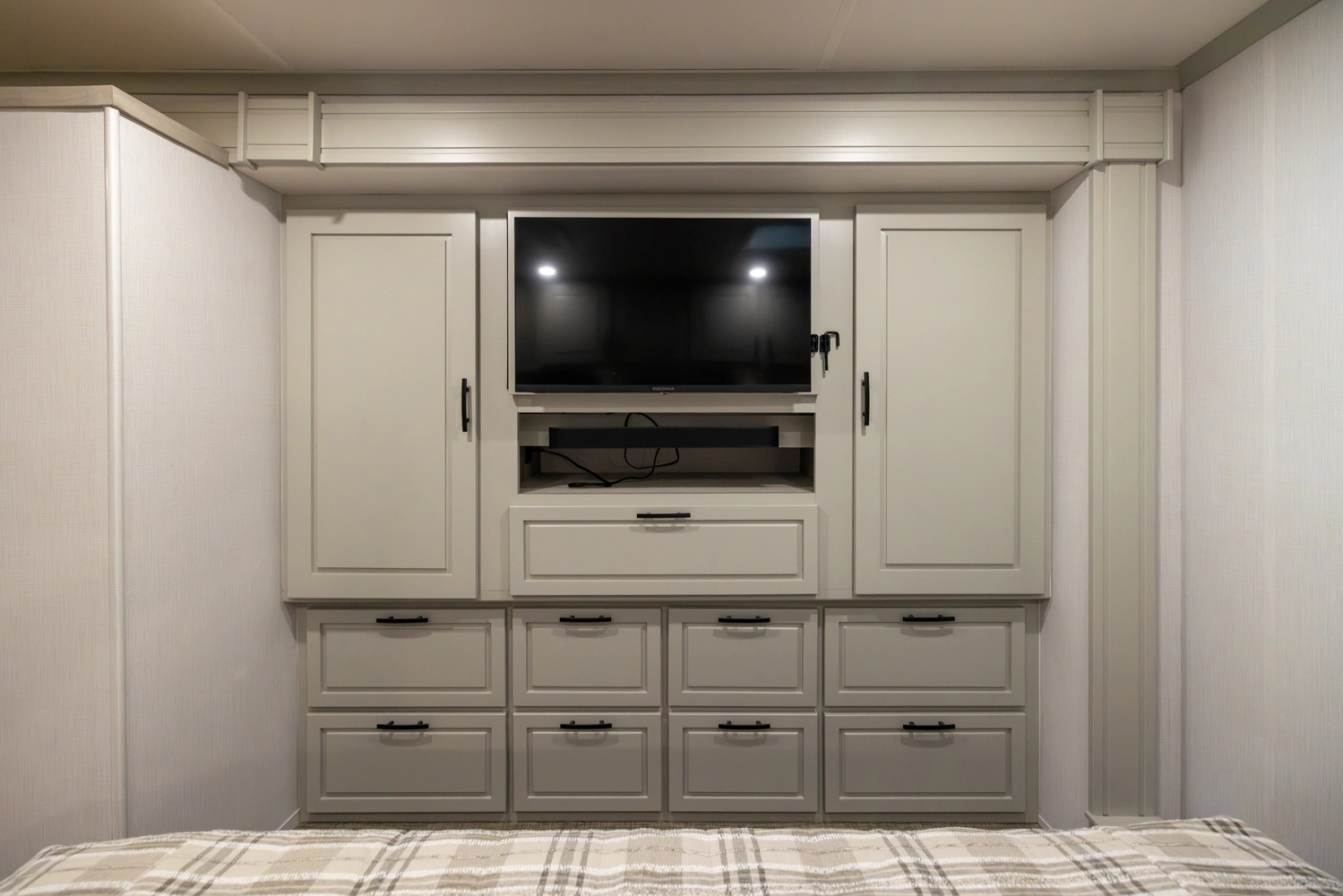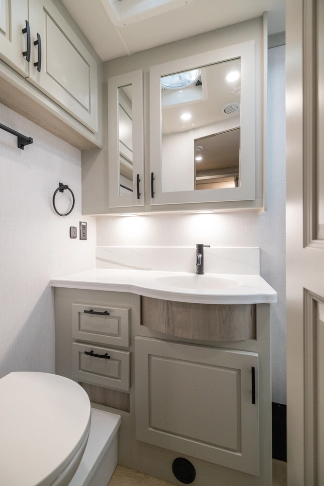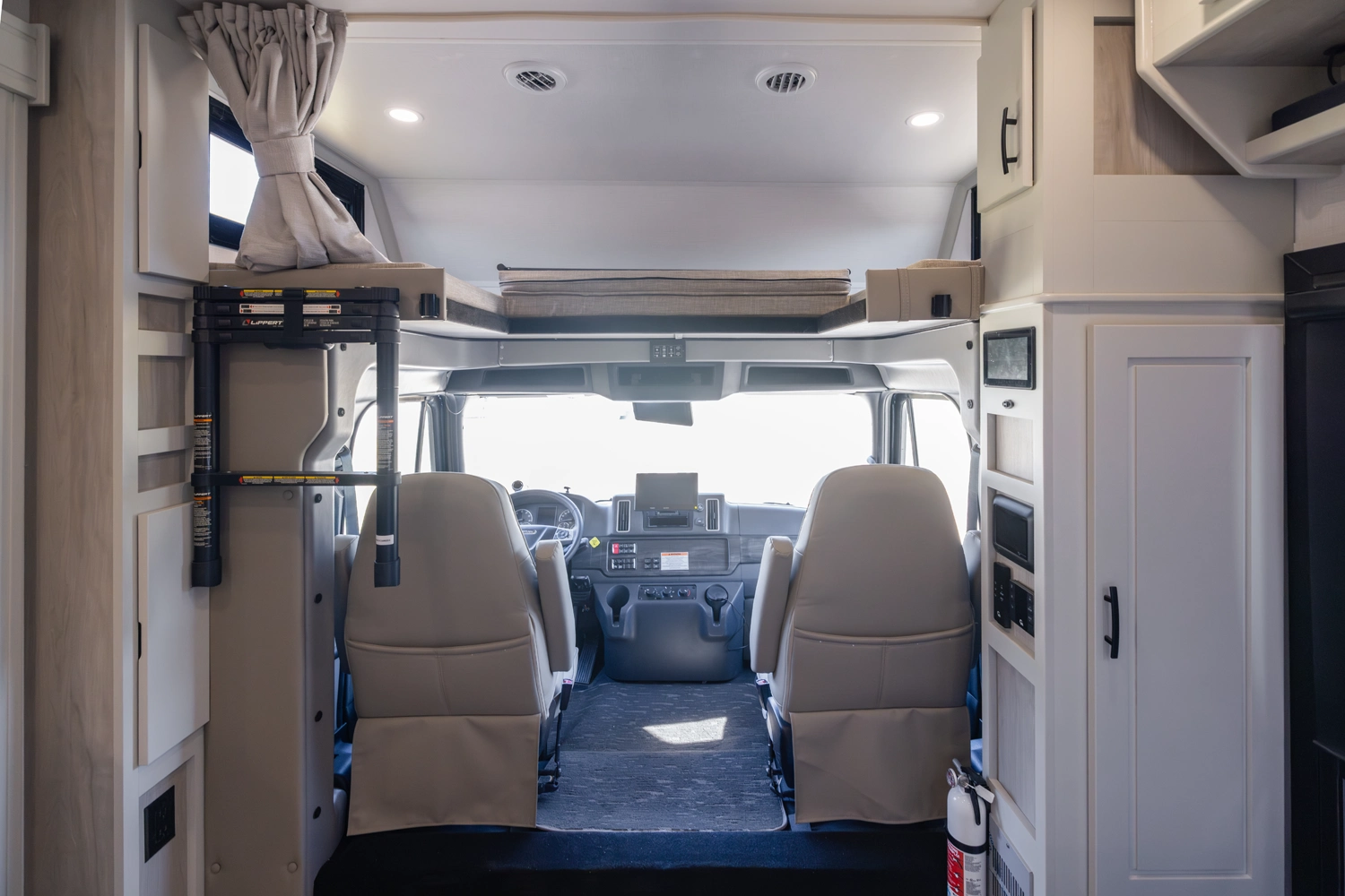 • Aerodynamic Fiberglass Front Cap with Cab-Over Cabinets